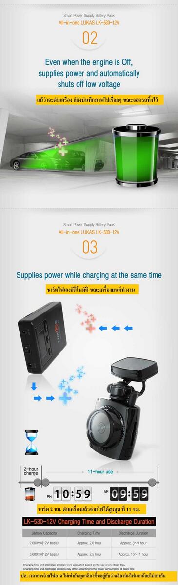 | LK-530 12V (2,600Amh) | battery safer+portable battery | 2790baht | 2hour charge 8~9hour record | |||