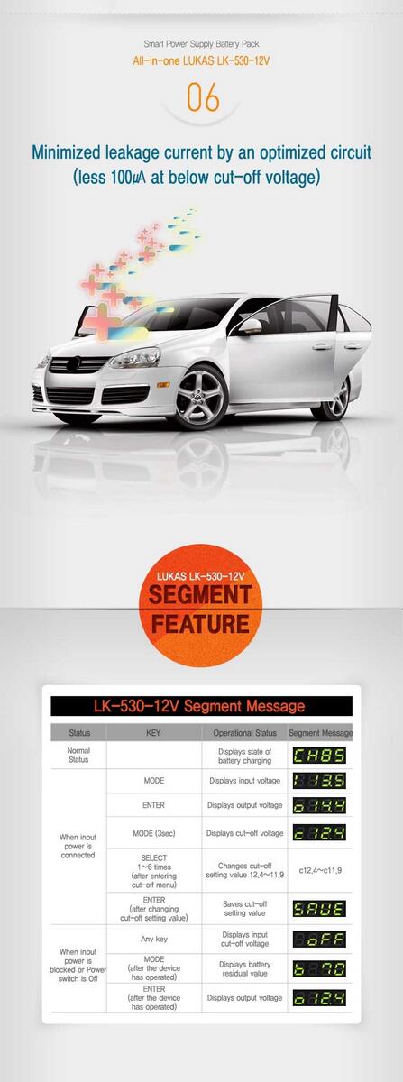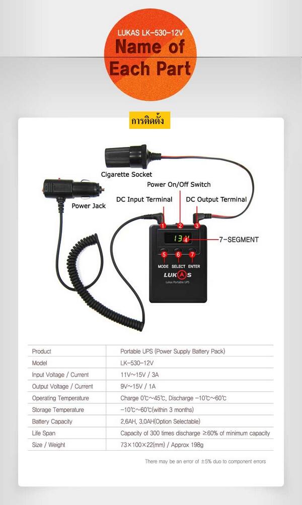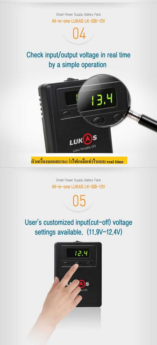 | LK-530 12V (3,000Amh) | battery safer+portable battery | 3290baht | 2.5hour charge 10~11hour record | |||