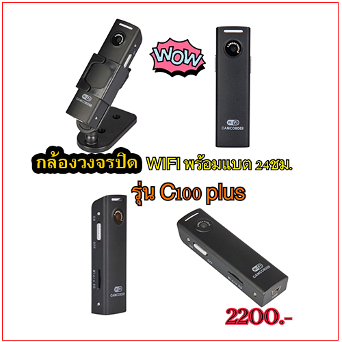 กล้องวงจรปิดจิ๋วWIFI ดูผ่านมือถือ รุ่น C100+ พร้อมแบตเตอรี่ ทำงานได้ 24ชม.